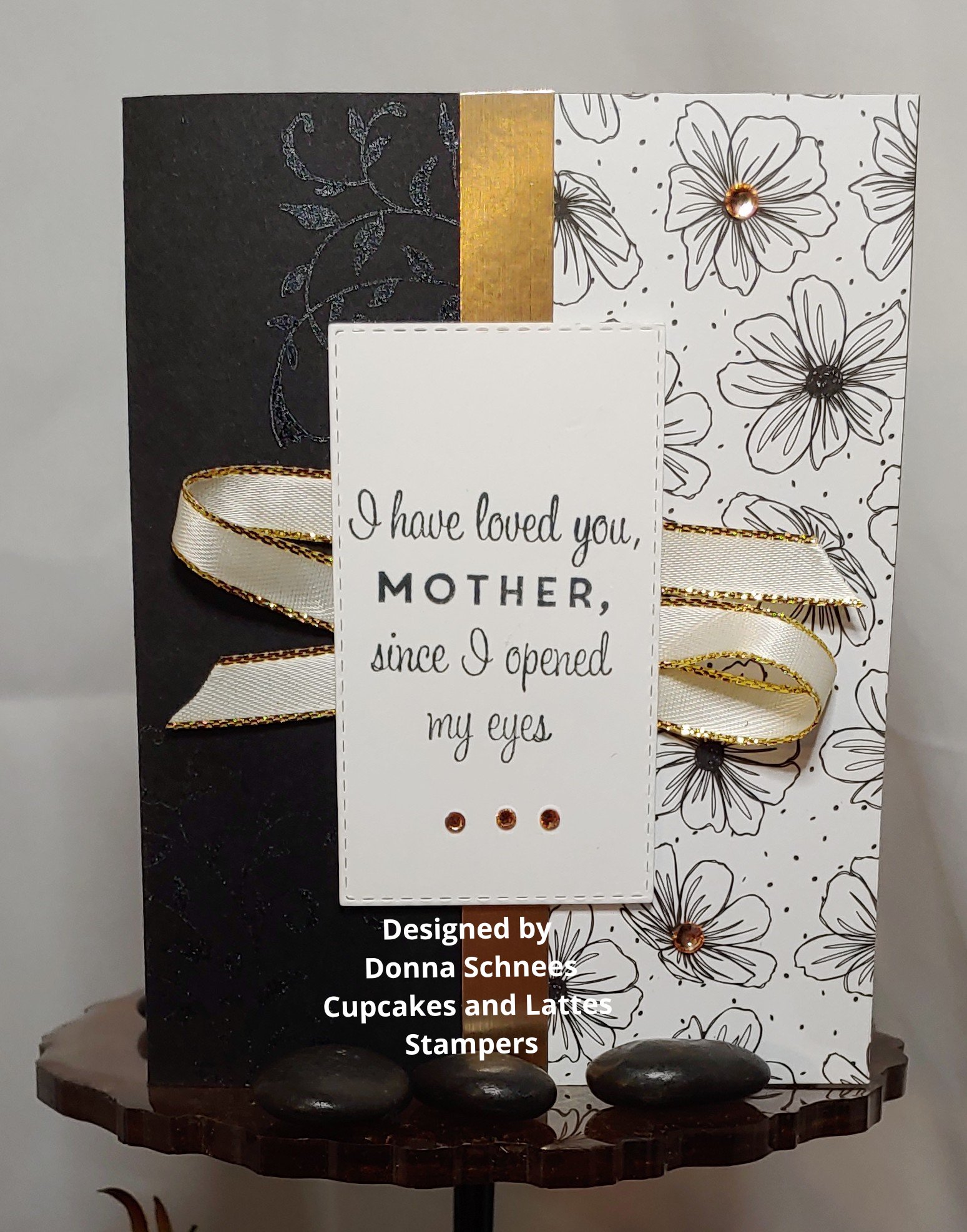 Today’s card is a special request from a client. She wanted a mother’s day card in black, white, and gold. I cased this card from the 2021-2022 annual catalog that just recently retired.