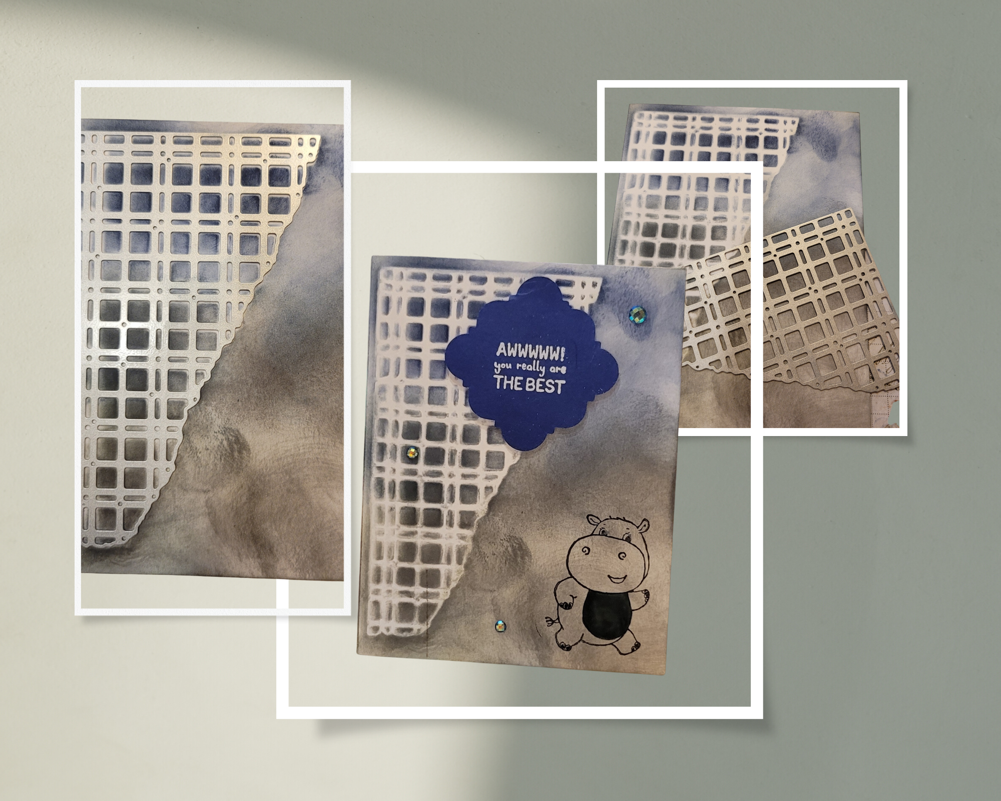 - Added it to the top with dimensionals and a few blue adhesive-backed gems to finish off.
